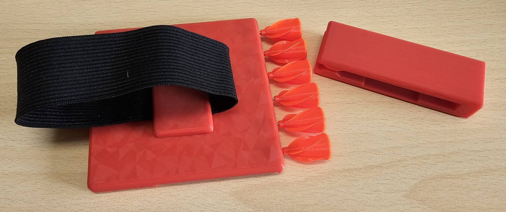 Für nicht-magnetische Darts habe ich eine geschlossene Variante. Das ist für's anklipsen auch OK, aber am Arm würde ich die nicht tragen, die Darts könnten rausfallen.